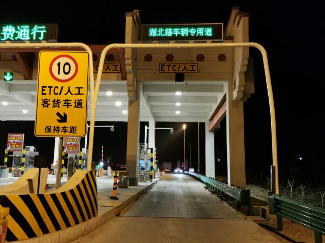 合六葉、六武高速在沿線收費(fèi)站設(shè)置湖北籍車輛通行專用車道,在車道前方擺放疫情檢測(cè)提示牌,配合屬地政府做好疫情檢測(cè)工作。監(jiān)控中心通過沿線情報(bào)板及時(shí)發(fā)布收費(fèi)站車輛通行要求、疫情檢測(cè)等相關(guān)提醒信息。